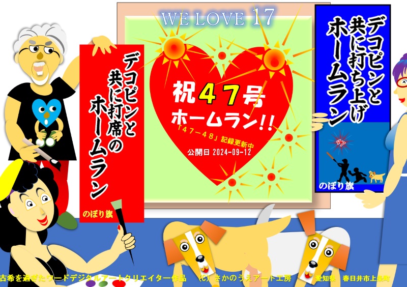![]() ![]() ![]() ★40号ホームランで 一句: 40号 まだ通過点の ホームラン ★40号ホームランで 一句: 足も決め 打つも記録の ホームラン ★40号ホームランで 一句: 6人目 初日本人 偉業の日 |